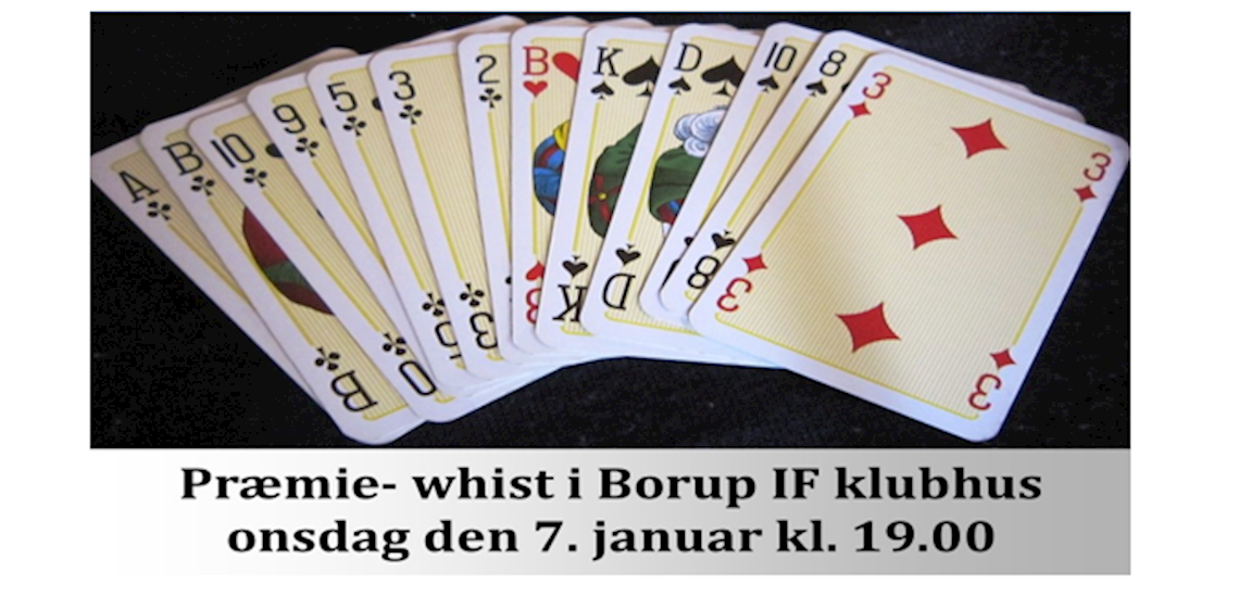 Præmiewhist starter efter nytår i Borup IF klubhus fra onsdag den 7. januar. Se opslag på vores hjemmeside.