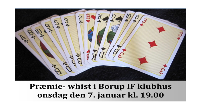 Præmiewhist starter efter nytår i Borup IF klubhus fra onsdag den 7. januar. Se opslag på vores hjemmeside.