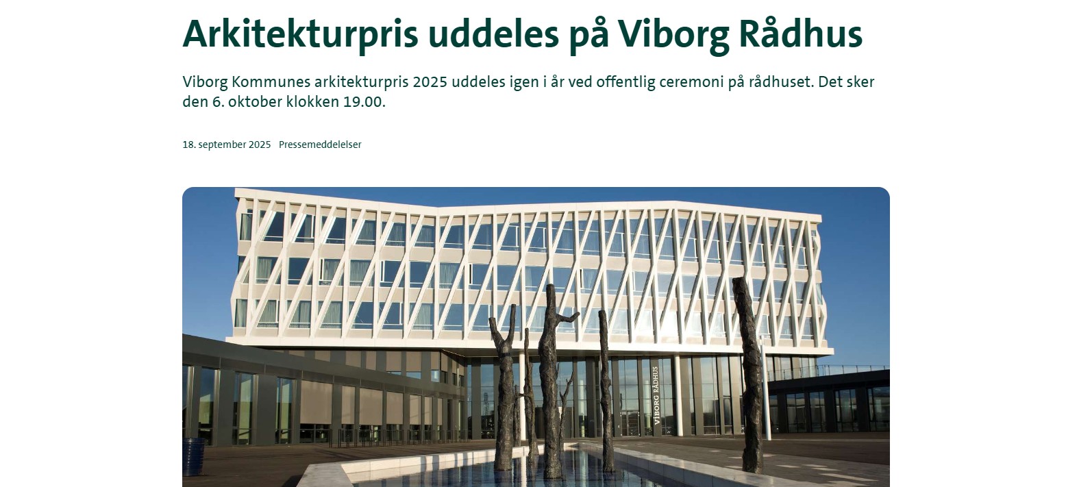 Mandag den 6. oktober uddeles Viborg Kommunes arkitekturpris 2025 ved et møde i Viborg Rådhus. Alle er velkomne til at tage derind og følge med i, om vores bro over Simested Å er så heldig at vinde den flotte pris. Broen er i hvert fald flot, så den har da en god chance.