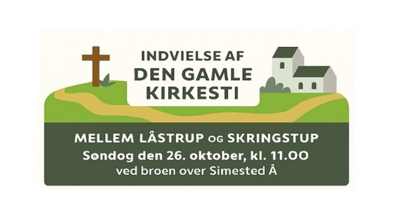 Indvielsen sker ved broen over Simested Å kl. 1100. Der tilbydes guidede vandreture fra henholdsvis Skringstrup Landsbypark og fra Engparken i Låstrup. Afgang begge steder kl. 1000 og indvielsestalen holdes ved broen, når de 2 grupper mødes kl. 1100. De historier, som relaterer sig til Den Gamle Kirkesti fortælles af guiderne undervejs. Se opslag på vores hjemmeside.