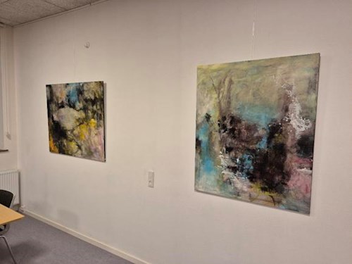 De første kunstnere på væggene er Susanne H. Clausen fra Viborg og Maren Grønkjær fra Skals. De udstiller nu deres malerier frem til den 22. februar 2026. Susanne er født og opvokset i Skals så begge udstillende kunstnere har relation til Fjordklyngeområdet.