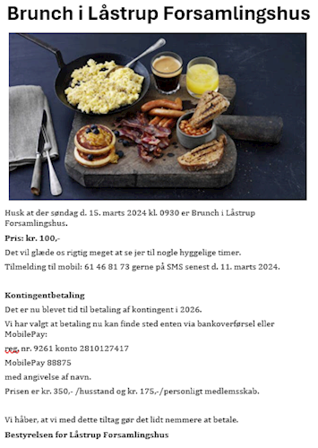 Husk Brunch i Låstrup Forsamlingshus 15. marts
