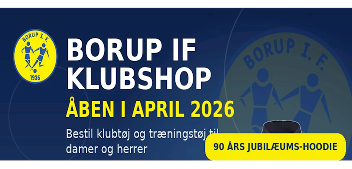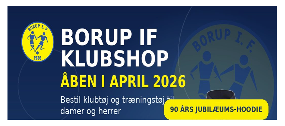 Den 16. maj 2026 er det 90 år siden Borup Fodboldforening holdt stiftende generalforsamling. Det fejres med reception, fodbold på stadion og jubilæumsfest i teltet om aftenen. Se opslag på vores hjemmeside.