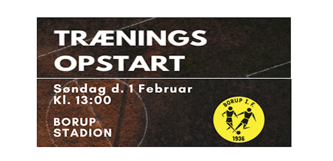 Træningsopstart i Borup IF søndag den 1. februar 2026, kl. 1300. Se opslag på vores hjemmeside.