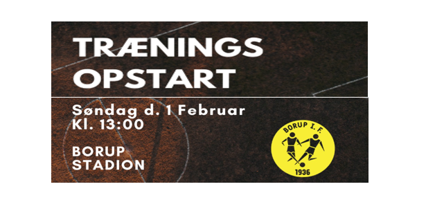 Træningsopstart i Borup IF søndag den 1. februar 2026, kl. 1300. Se opslag på vores hjemmeside.