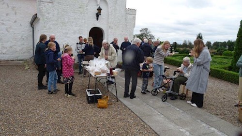 Efter gudstjenesten var der stående kirkekaffe uden for kirken, hvor børneklubben stod for kaffe og muffins til støtte for Foday lægestuderende Sierra Leone, hvor deltagerne selv bestemte prisen.