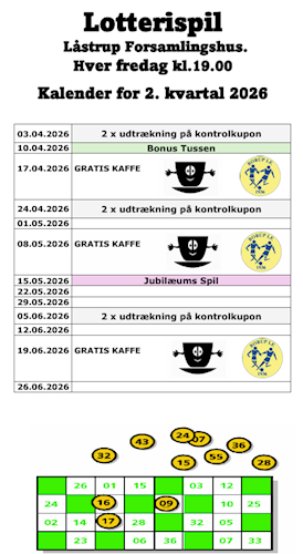 Lotterispil i Låstrup Forsamlingshus anden kvartal 2026