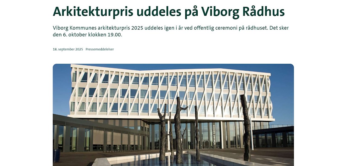 Mandag den 6. oktober uddeles Viborg Kommunes arkitekturpris 2025 ved et møde i Viborg Rådhus. Alle er velkomne til at tage derind og følge med i, om vores bro over Simested Å er så heldig at vinde den flotte pris. Broen er i hvert fald flot, så den har da en god chance.