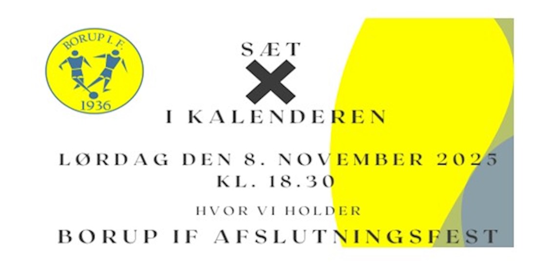 Borup IF holder afslutningsfest lørdag den 8. november 2025, så sæt kryds i kalenderen eller endnu bedre meld dig til fest.