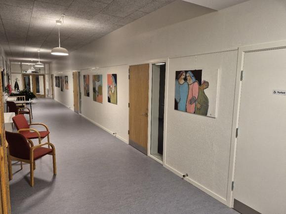 Fjordklyngehusets vægge og rum kan nu bruges til udstilling af kunst. De første kunstværker er allerede hængt op på væggene i gange og forsamlingslokaler.