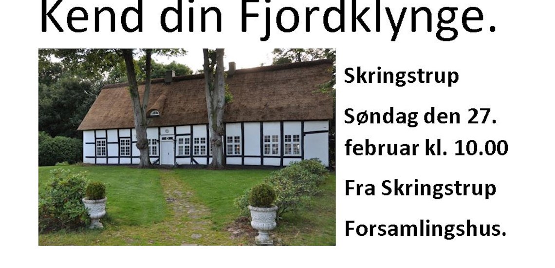Søndag den 27. februar afvikles næste runde af "Kend Din Fjordklynge" vandreture. Denne gang med udgangspunkt fra Skringstrup Forsamlingshus kl. 1000. Der er kaffe og brød i bålhytten i Skringstrup Landsbypark efter turen. Se opslag på vores hjemmeside.