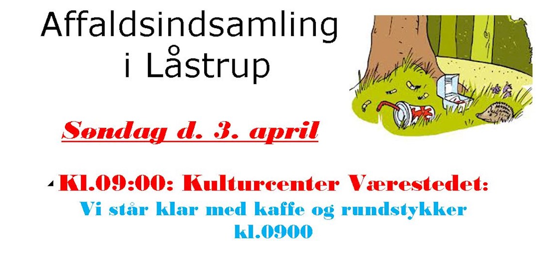 Søndag den 3. april er det igen tid til eftersyn af vores vejgrøfter og grønne arealer i Låstrup og omegn. Se opslag om årets affaldsindsamling på vores hjemmeside.