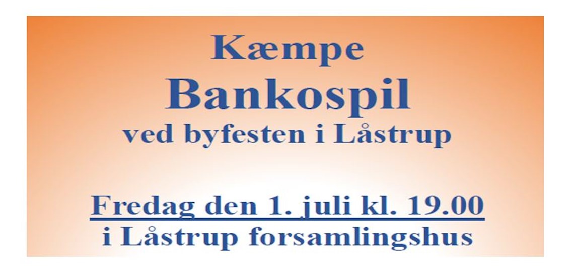 Fredag den 1. juli 2022, kl. 1900 afholdes kæmpe bankospil i Låstrup Forsamlingshus i forbindelse med byfesten i Låstrup. Se opslag på vores hjemmeside.