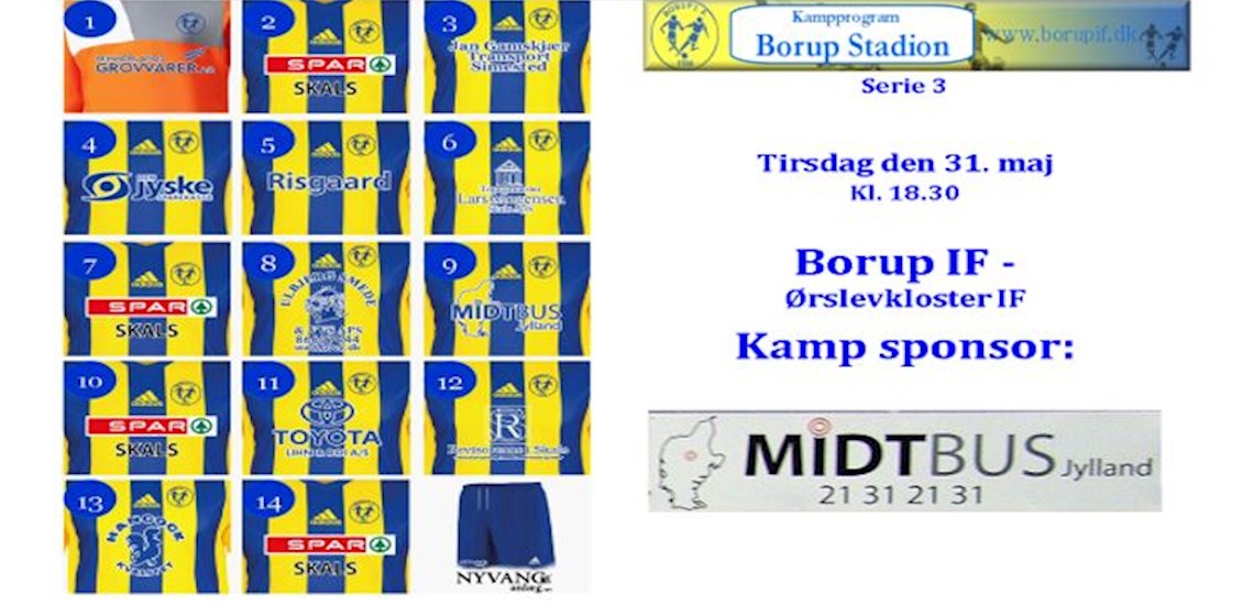 Tirsdag den 31. maj spiller Borup IF serie 3 herrer hjemme mod naboklubben Ørslevkloster IF. Kom og støt vores drenge i kampen om gode 3 point. Husk der er fadøl og pølser klar til alle.