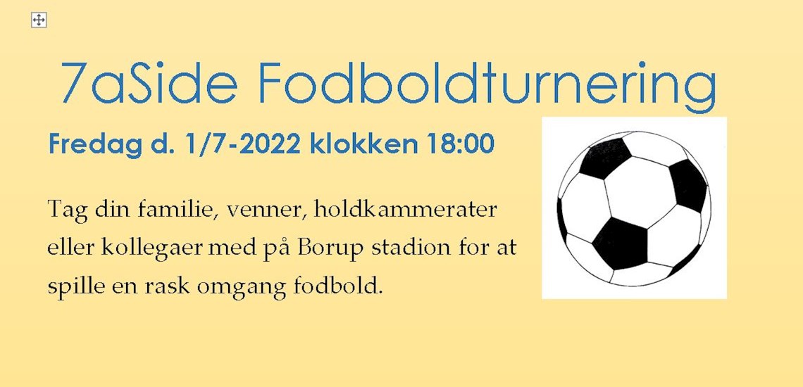Det er nu tid til at finde og tilmelde et fodboldhold til 7aSide Fodboldturnering ved Byfesten i Låstrup fredag aften. Se opslag på vores hjemmeside.