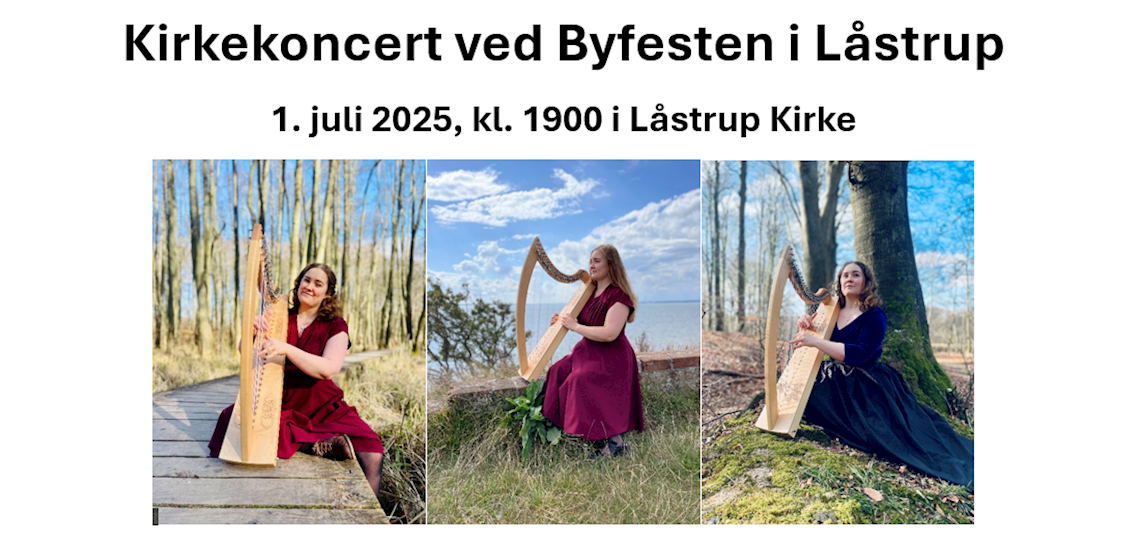 De første programpunkter fra Byfesten i Låstrup i uge 27 er ved at være på plads. Herunder den årlige kirkekoncert i år med harpe og sang fra hav og højland ved Sigrid Vibe. Se opslag på vores hjemmeside.