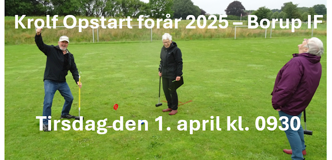 Tirsdag den 1. april 2025, kl. 0930 er der standerhejsning og opstart af krolf i Borup Idrætsforening. Kom og prøv kræfter med en uformel gang krolf. Der er kaffe og snak i klubhuset efter dysten.