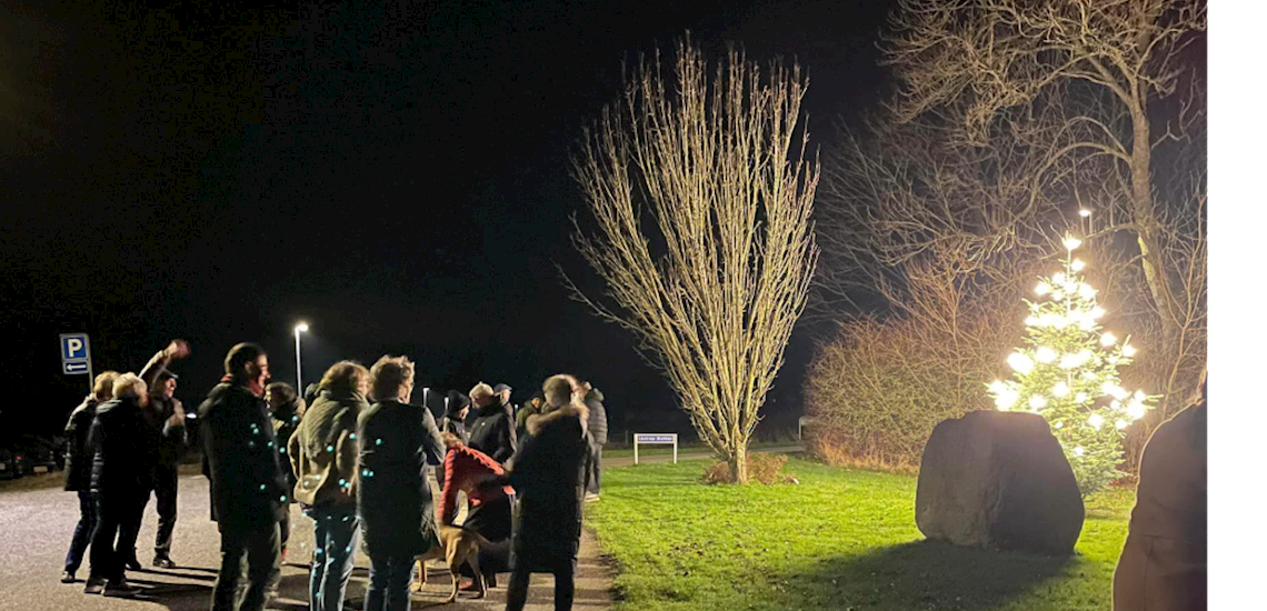 35 af byens borgere var mødt op til gudstjeneste og juletræstænding i Låstrup Kirke første søndag i advent. Det lykkedes for forsamlingen at få lys i juletræet, som nu kan lyse frem til jul.